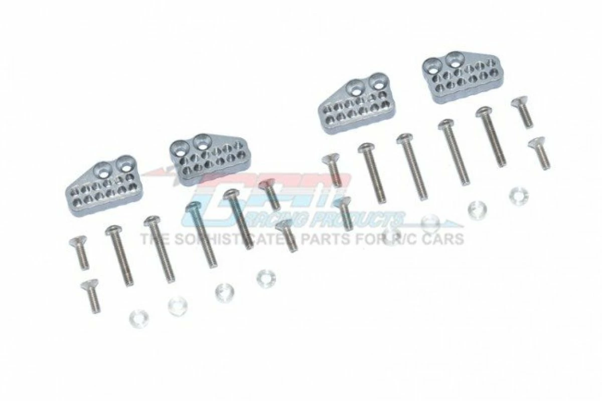 GPM Racing CP028FR-GS | GPM Grey Silver Aluminium Axial Capra Front & Rear Adjustable Shock Towers 4Pcs W/ Hardware