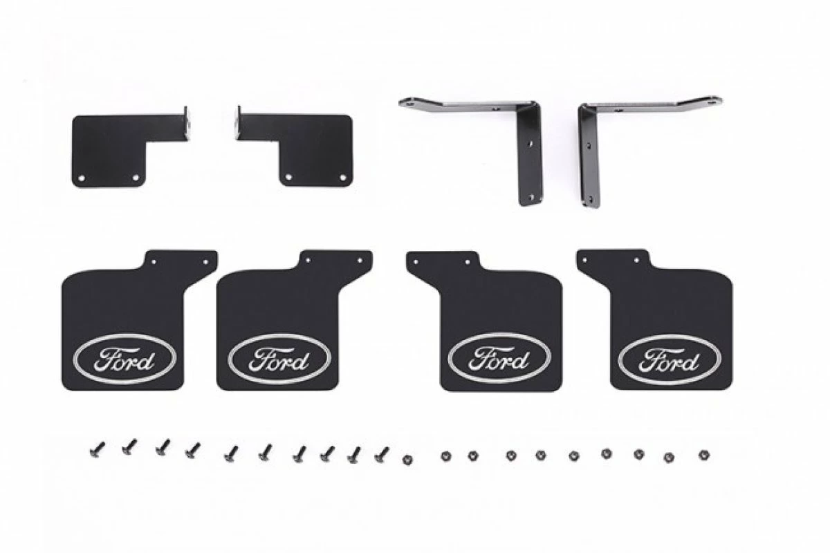 GPM Racing TRX4ZSP65A-BK | GPM Black Front & Rear Ford Mud Flaps W/ Black Aluminium Mounts Set